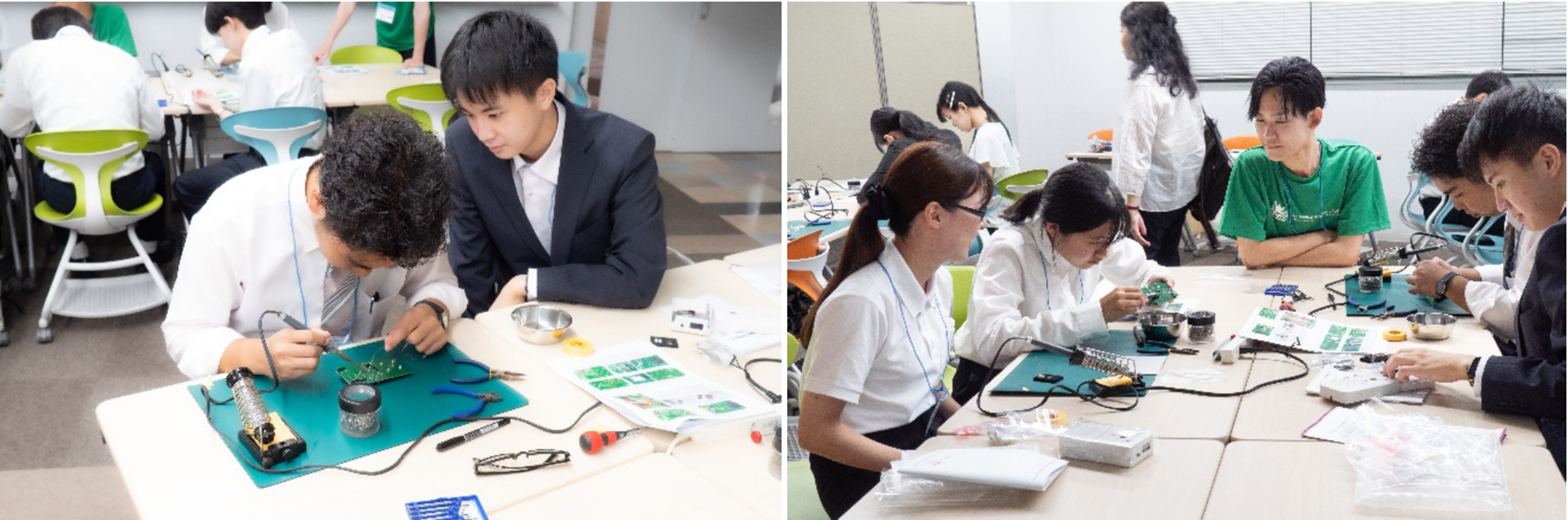 (ハンズオンセミナーでは、はんだごてを用いて簡易線量計を作成)